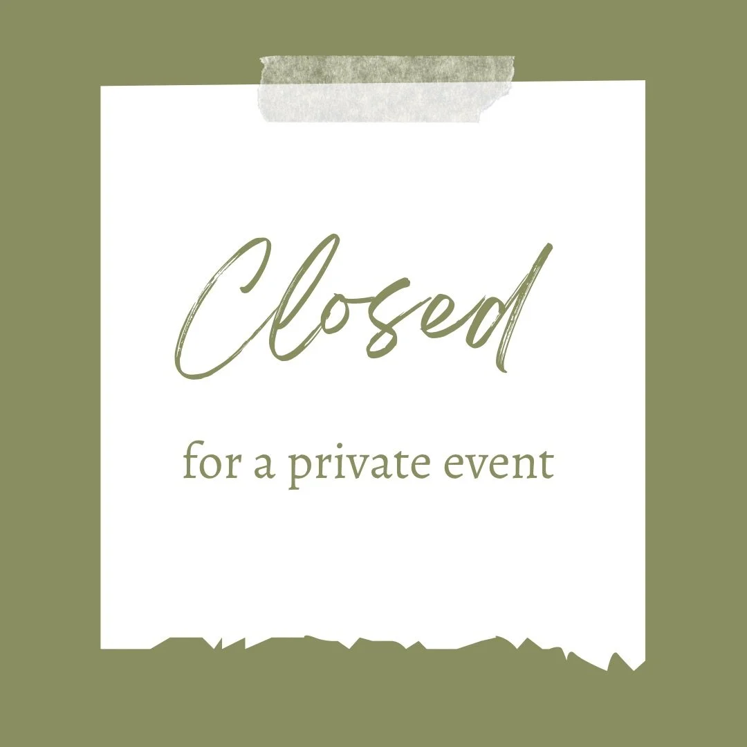 Closed for a Private Event. Please join us Friday 2-9, Saturday 10-9, or Sunday 10-9